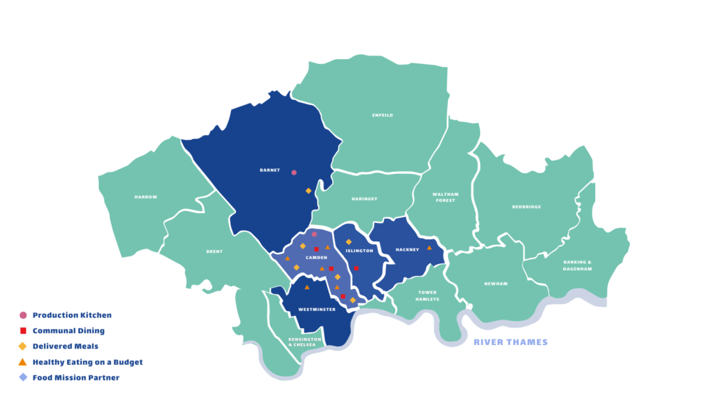 Since 2022, FEAST has developed and coordinated strong collaborative food partnerships in the London boroughs of Camden and Redbridge to help drive local food system change, tackle food insecurity and ensure residents have access to nutritious, affordable and sustainable food.
